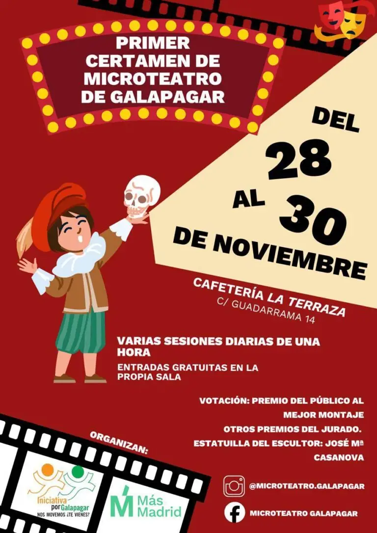 Este Primer Certamen de Microteatro pretende la promoción de la actividad cultural popular en nuestro municipio. El objetivo es ampliar en Galapagar la afición por el teatro a todo tipo de público, incluidos los jóvenes que habitualmente están más alejados. La especificidad de este proyecto es romper la rigidez de asistir a una sala tradicional (a la italiana), ofreciendo múltiples espectáculos breves que se ofrecen en un ámbito más cercano, relajado y hacer posible la apertura de nuevos públicos y nuevas “vocaciones” culturales.